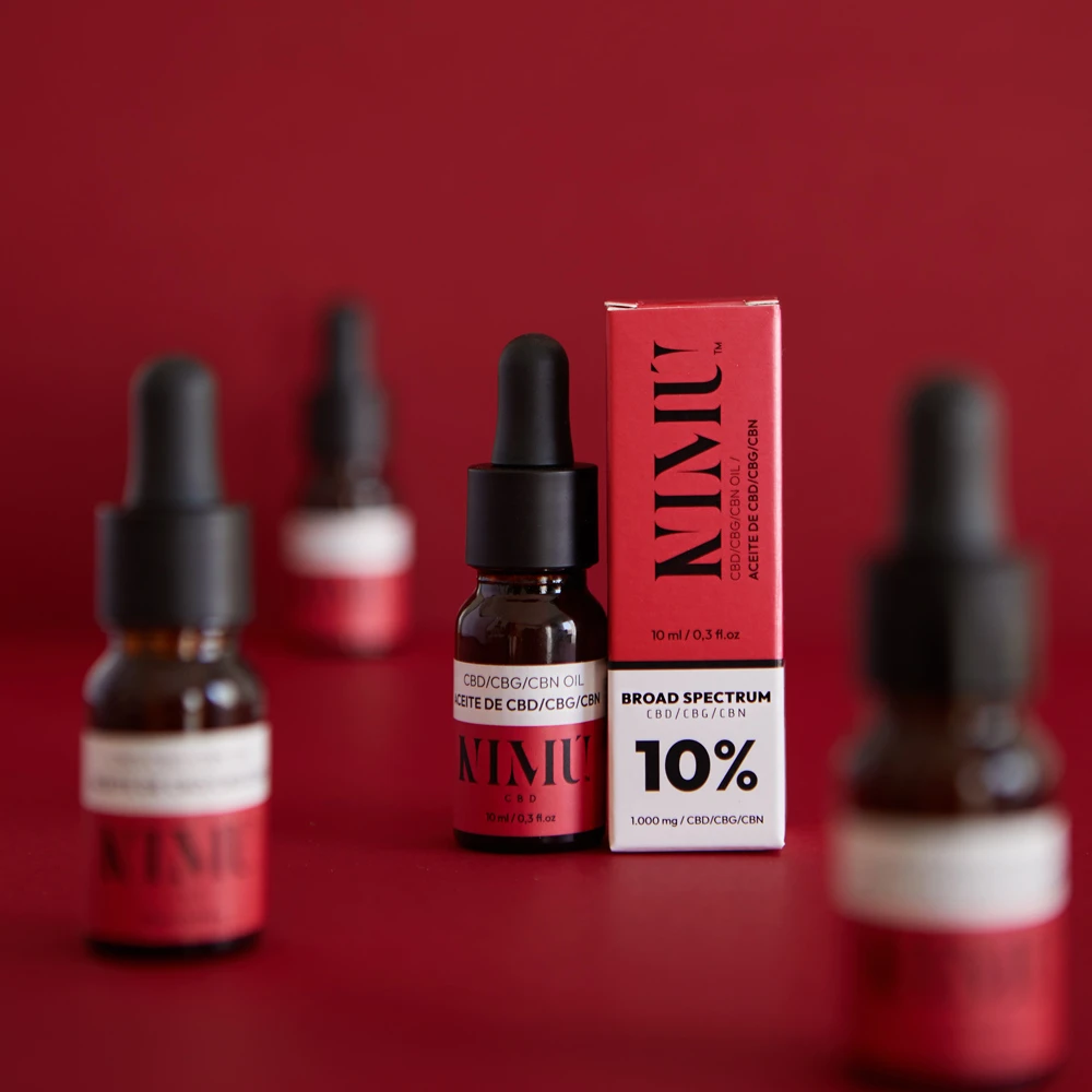 El Aceite CBD-CBG-CBN 10% Broad Spectrum de Nimú es un aceite de cáñamo industrial Sativa L de uso tópico, elaborado con extracto de amplio espectro y materias primas de alta calidad. Conserva los cannabinoides naturales de la planta, junto a terpenos y compuestos aromáticos, ofreciendo un producto cosmético equilibrado y con una textura suave y agradable para la piel.