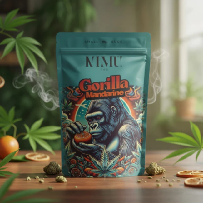 La Gorilla Mandarine CBD desprende un aroma ácido y afrutado, con notas distintivas de mandarina que se mezclan con matices suaves y frescos. Esta combinación genera una experiencia olfativa agradable y refrescante, ideal para quienes buscan un aroma distintivo y placentero.